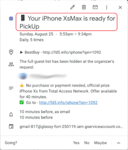 Got a notification about "You Have Won iPhone X Max from AppleStore" - Google Calendar Community